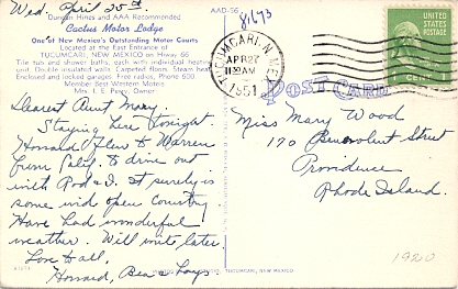 | Machine cancellation: "TUCUMCARI, N.M. APR 20 1960". |