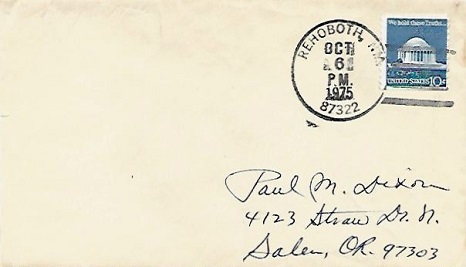 | Hand cancellation: "REHOBOTH, NM 87322 OCT 6 1975". |