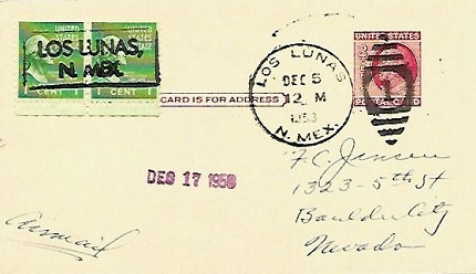 | Machine cancellation: "MORIARTY, N.MEX. DEC 5 1958". |