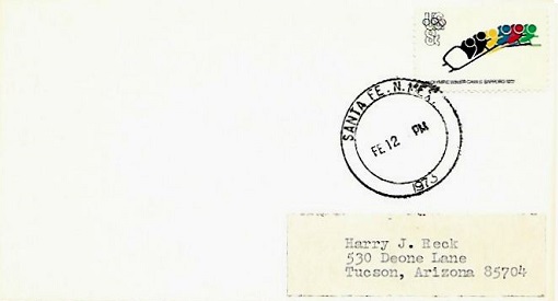 | Two different cancellations: machine on front: "SANTA ROSA, NM 88435 OCT 30 1969", and hand on back: "SANTA ROSA, N. MEX. USPO OCT 30 1969". |