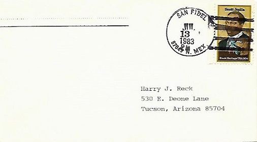 | Hand cancellation: "SAN JON, NM 88434 MAR 14 1983". |