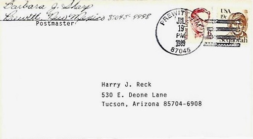 | Hand cancellation: "CONTINENTAL DIVIDE, NM 87312 JUN 18 1986". |