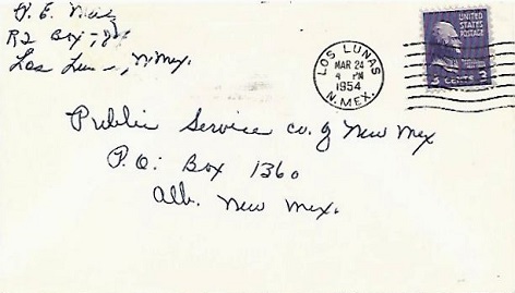| Hand cancellation: "MANUELITO, N.MEX. MAY 3 1956". |