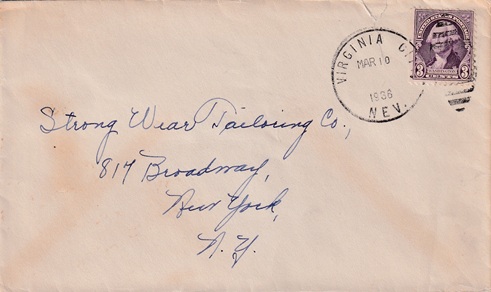 Hand cancellation: "VIRGINIA CITY, NEV. MAR 10 1936 ( 1 )".