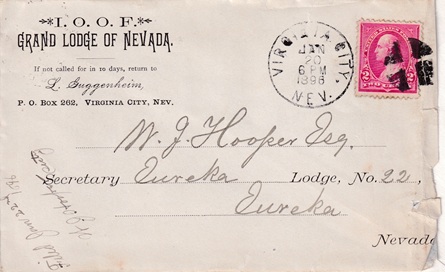 Hand cancellation: "VIRGINIA CITY, NEV. FEB 2 1886".
