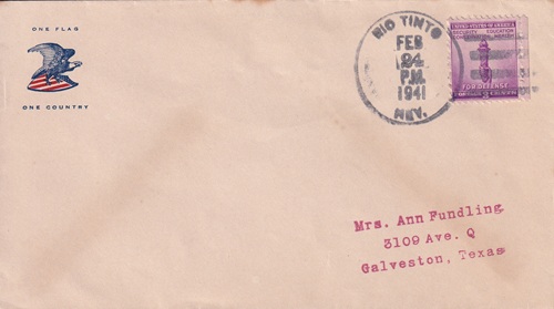 Hand cancellation: "RIO TINTO, NEV. FEB 24 1941".