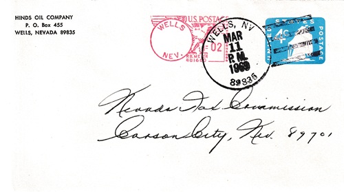 Hand cancellation: "WELLS, NV 89835 MAR 11 1969".
