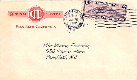 | Machine cancellation: "TERMINAL STA., SACRAMENTO, CALIF. APR 11 1932". |