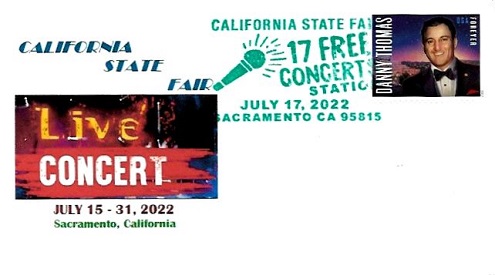 | Special machine pictorial cancellation: "CALIFORNIA STATE FAIR 17 FREE CONCERTS STATION, SACRAMENTO, CA 95815 JULY 17, 2022". |