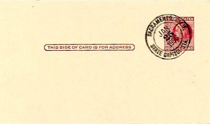 | Hand cancellation: "STATE CAPITOL STA., SACRAMENTO, CALIF. JAN 25 1956". |
