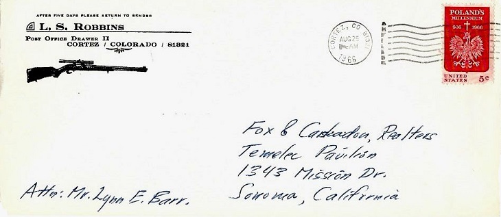 | Hand cancellation: "LEWIS, CO 81327 AUG 24 1965". |