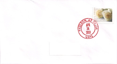 | Hand cancellation: "PAULDEN, AZ 86334 USPS APR 26 2013". |