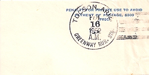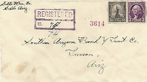 | Two different hand cancellations: on front "EMERY PARK, ARIZ. OCT 16 1952", on back "EMERY PARK BR., TUCSON, ARIZ. OCT 16 1952". Has "REGISTERED NO." auxiliary marking on front. |