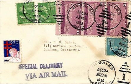 | Hand cancellation: "NOGALES, ARIZ. DEC 24 1939 | 1 |". Has "SPECIAL DELIVERY" and "VIA AIR MAIL" auxiliary markings. |