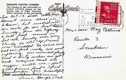 | Hand cancellation: "SAHUARITA, ARIZ. JUL 29 1953". |