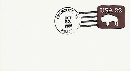 | Hand cancellation: "PRESCOTT, AZ 86301 OCT 23 1986". |