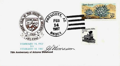 | Hand cancellation: "PRESCOTT, AZ 86301 FEB 14 1987". |