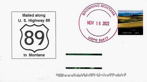 | U. S. HIGHWAY 89 POSTAL HISTORY - Montana |